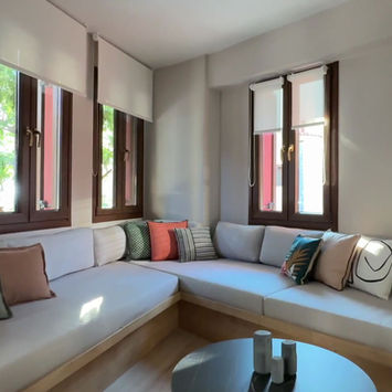 The first floor is filled with natural light from numerous windows and offers a lovely view of the cobbled streets and tiled rooftops of the Upper Town. The living room forms the characteristic “hayati” – an architectural feature of historic residences. The interior blends subtle aesthetics with functionality: it features a comfortable living area, a separate bedroom, a basic equipped kitchen, and a modern bathroom. It is ideal for couples, small families, or travelers seeking an authentic Thessaloniki experience.